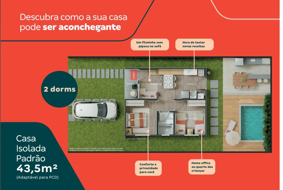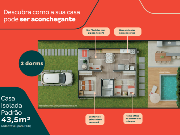 🛏️ Casa isolada com 2 dormitórios (43,5m²).